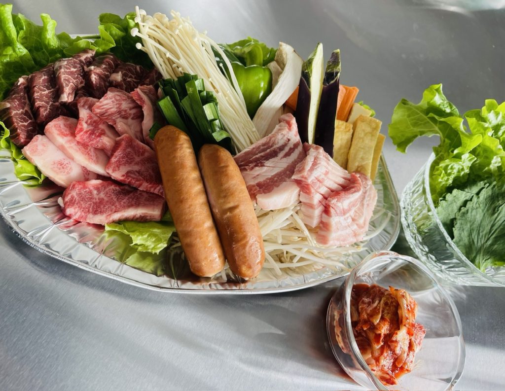 | 牛カルビ・牛ハラミ サムギョプサルセット・焼き野菜 (お野菜は季節によって変わります) |
